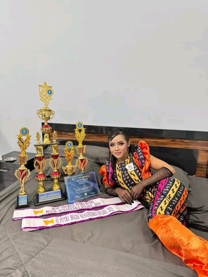 SimakMedia.Com, Pare-pare, 26 Oktober 2025 – Kontestan muda berbakat, Suci Lestari dengan IG @suci_lestari177 berhasil mencuri perhatian di ajang Pencarian Bakat Putra Putri Bugis Nusantara Sulawesi Selatan yang digelar pada Sabtu malam, 25 Oktober 2025 di Pare-pare. Dalam kompetisi yang memperebutkan gelar Putra Putri Bugis Nusantara tersebut, Suci Lestari memborong tiga juara sekaligus, yaitu: