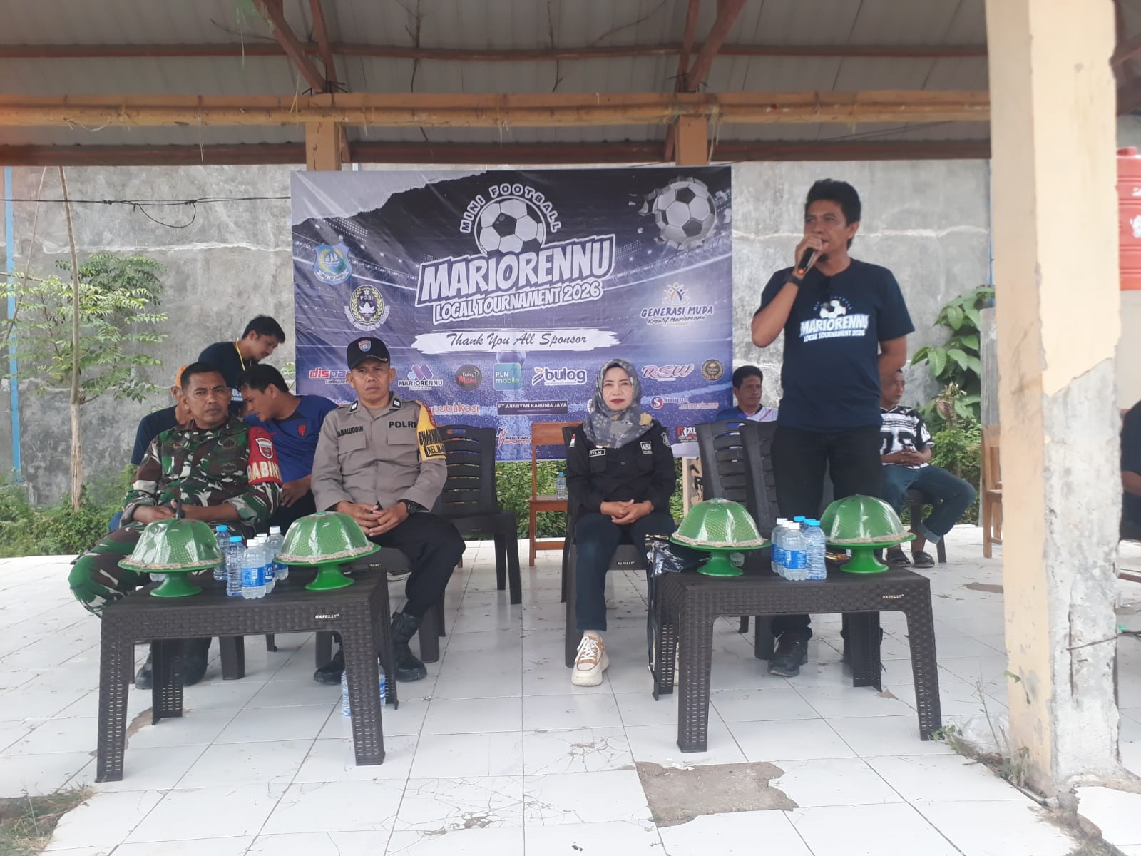 Mariorennu Local Tournament 2026 dibuka secara resmi oleh Lurah Mariorennu. Sitti Nurmiati, S.Sos. Dalam sambutannya, Lurah Mariorennu menyampaikan apresiasi yang tinggi kepada panitia pelaksana dan seluruh elemen masyarakat yang telah berpartisipasi dalam menyukseskan kegiatan tersebut. Ia berharap turnamen ini dapat menjadi wadah pembinaan olahraga, menumbuhkan semangat sportivitas, serta memperkuat persatuan dan kebersamaan di tengah masyarakat Kelurahan Mariorennu.