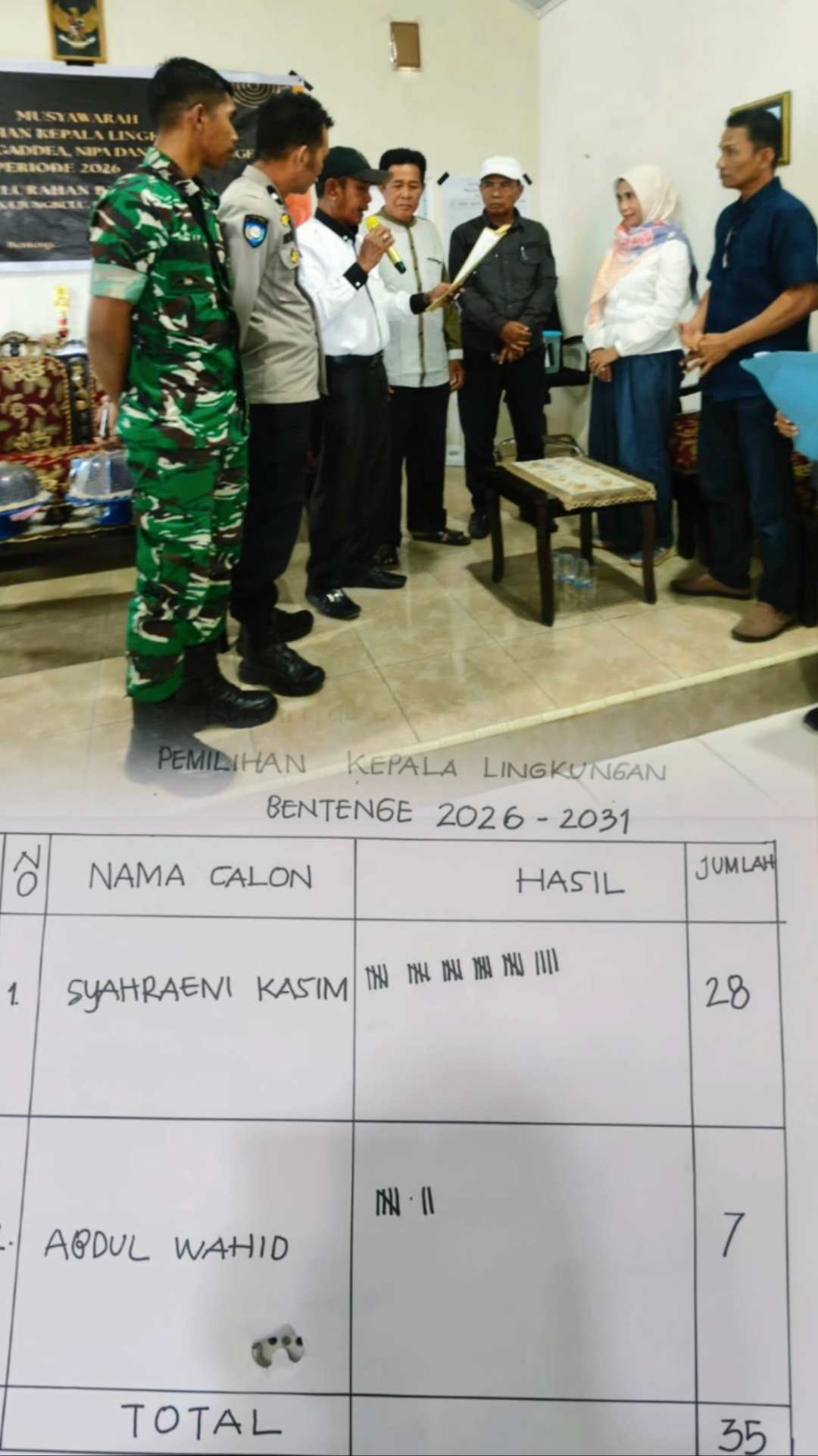 SimakMedia.Com, Pemilihan kepala lingkungan Bentenge, Kelurahan Bentenge, Kecamatan Ujung Bulu, Kabupaten Bulukumba telah usai. Syahraeni Kasim terpilih sebagai kepala lingkungan baru dengan memperoleh suara 28 suara,dan calon lainnya 7 suara dari total 35 suara.