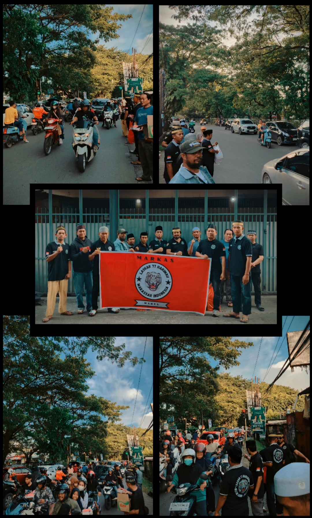 Para anggota Laskar 77 Harimau Makassar Indonesia turun langsung ke jalan untuk membagikan sekitar 300 paket takjil kepada pengendara motor, sopir angkutan, serta masyarakat yang melintas di persimpangan tersebut. Aksi ini disambut antusias oleh masyarakat yang tengah beraktivitas menjelang berbuka puasa.