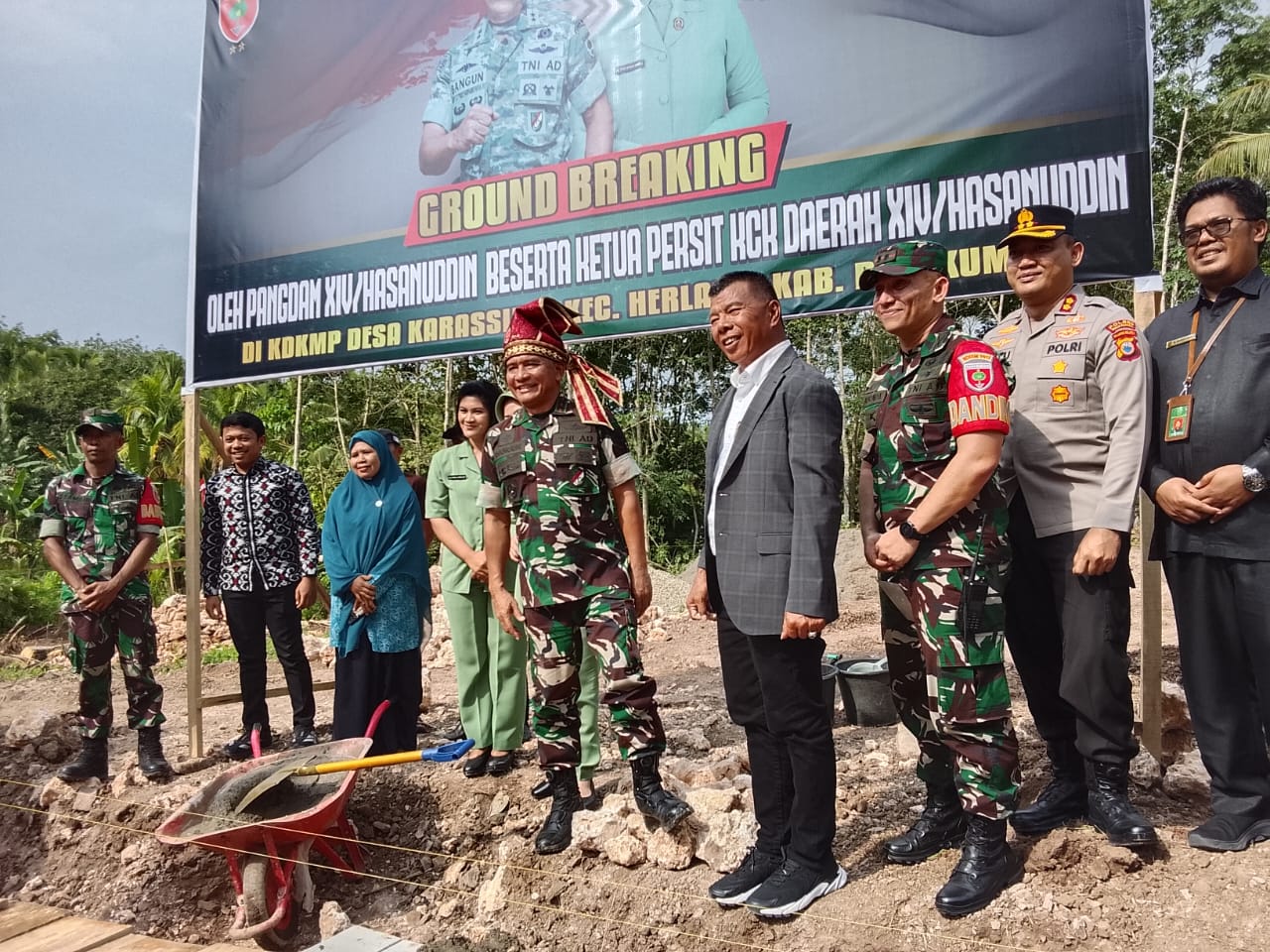 SimakMedia.Com, Bulukumba, Kunjungan panglima kodam(pangdam XIV hsn) mayjen TNI Bangun nawoko dan Ny. Renny Bangun nawoko didesa karassing kecamatan herlang kab. Bulukumba dalam rangka peletakan batu pertama pembangunan KDKMP .