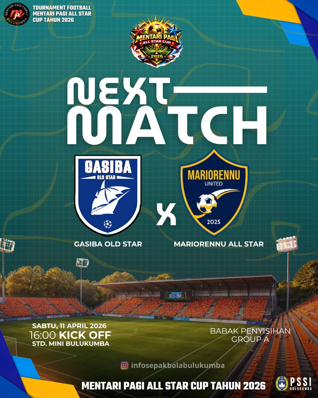 Pada pertandingan pembuka ini, Mariorennu United akan menghadapi tim tangguh, Gasiba Old Star, yang dikenal sebagai kumpulan legenda sepak bola Bulukumba yang pernah menorehkan berbagai prestasi di masa kejayaannya.